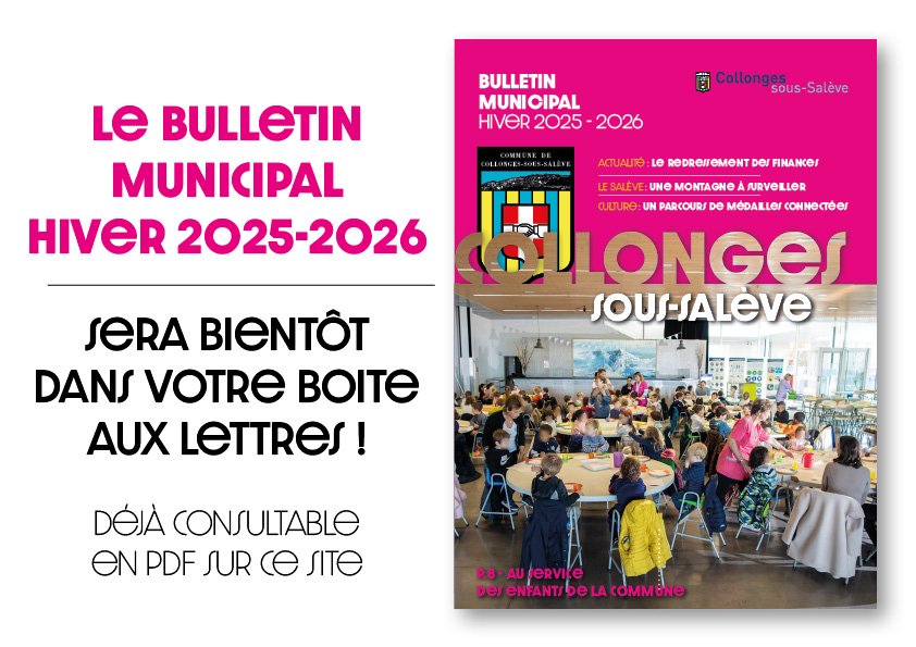 Le nouveau bulletin municipal Hiver 2025- 2026 de Collonges-sous-SalÚve sera distribué dans les boßtes aux lettres de tous les habitants dans les prochains jours.