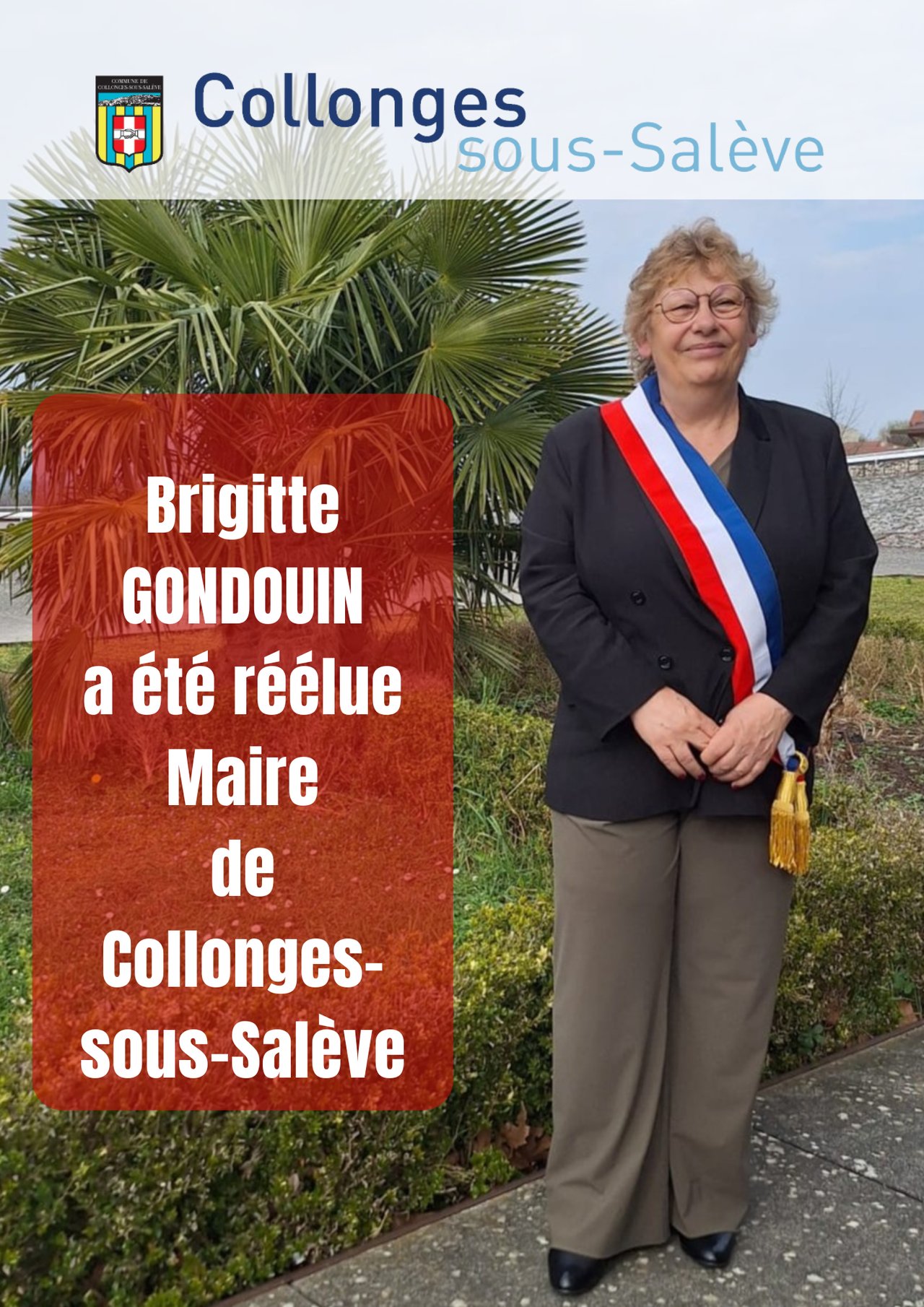 Madame Brigitte GONDOUIN a été réélue Maire de Collonges-sous-Salève le 21 mars 2026.